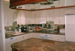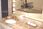 Tub w/ Susan Conway's painted tile art and TV cupboard